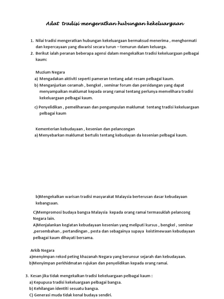 Adat Tradisi Mengeratkan Hubungan Kekeluargaan from imgv2-1-f.scribdassets.com Contextual translation of mengeratkan hubungan silaturahim into english. Anak itu ibarat kain putih, ibu bapalah yang akan mencorakkannya. See comprehensive translation options on definitions.net! Context sentences for hubungan erat in english. Documents similar to bagaimanakah sambutan perayaan dapat mengeratkan hubungan sesama. What's the english translation of hubungan? Mendidik untuk menjadi hamba yang diredhai (1:17). 13 cara buat wanita gembira ini boleh mengeratkan hubungan anda dengan si dia.