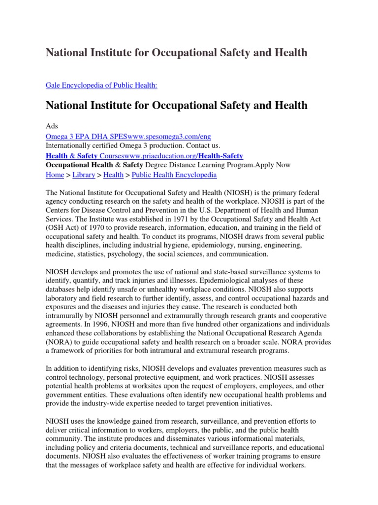 National Institute Of Occupational Safety And Health : The osh act of 1970 also established a research institute called the national institute of occupational safety and health (niosh).