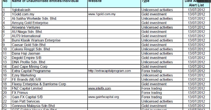 Senarai ni adalah berdasarkan maklumat, aduan dan pertanyaan yang telah diterima oleh pihak bnm.